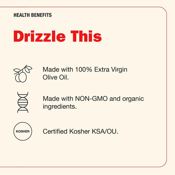 Organic olive oil made with hand-picked, organic olives from the Mediterranean.