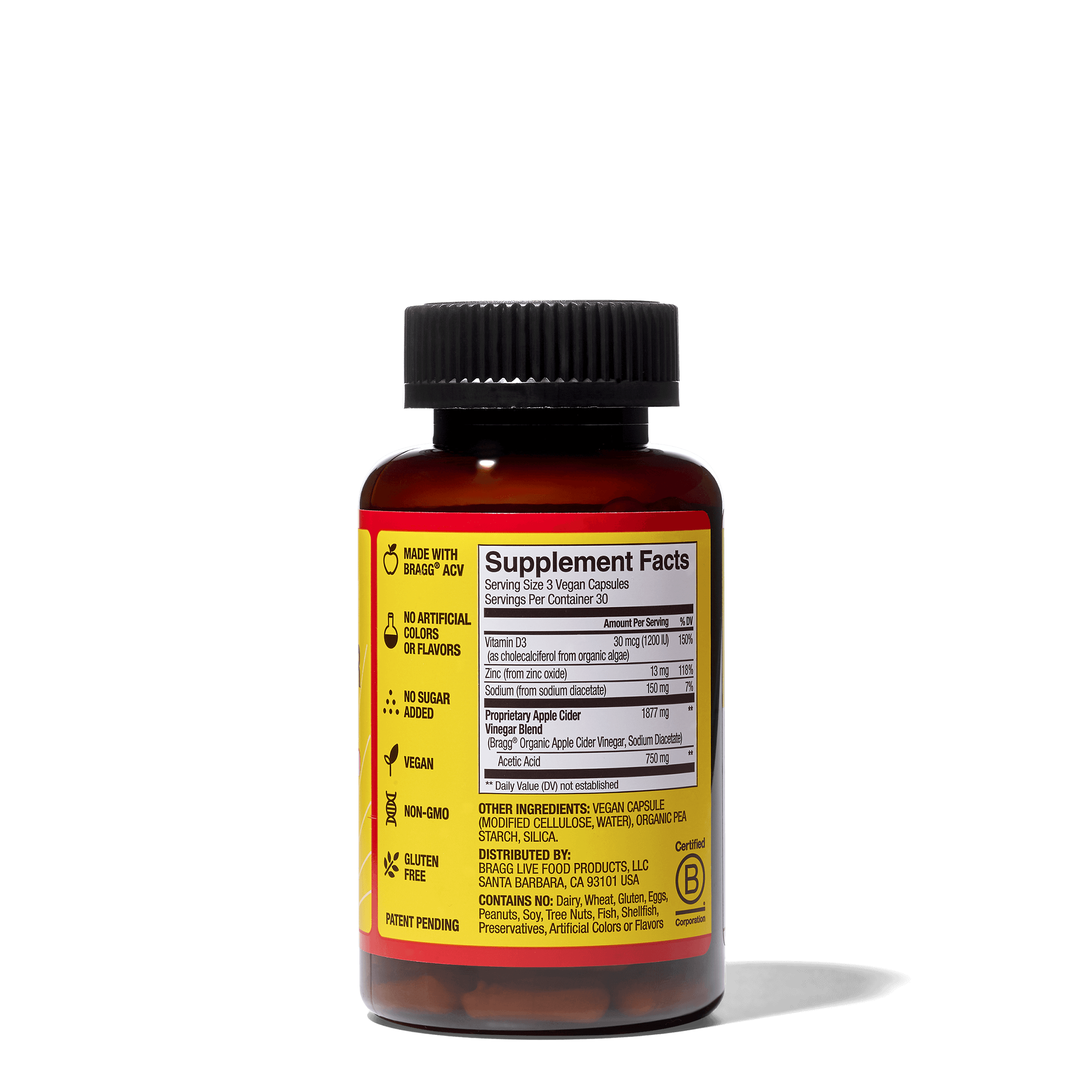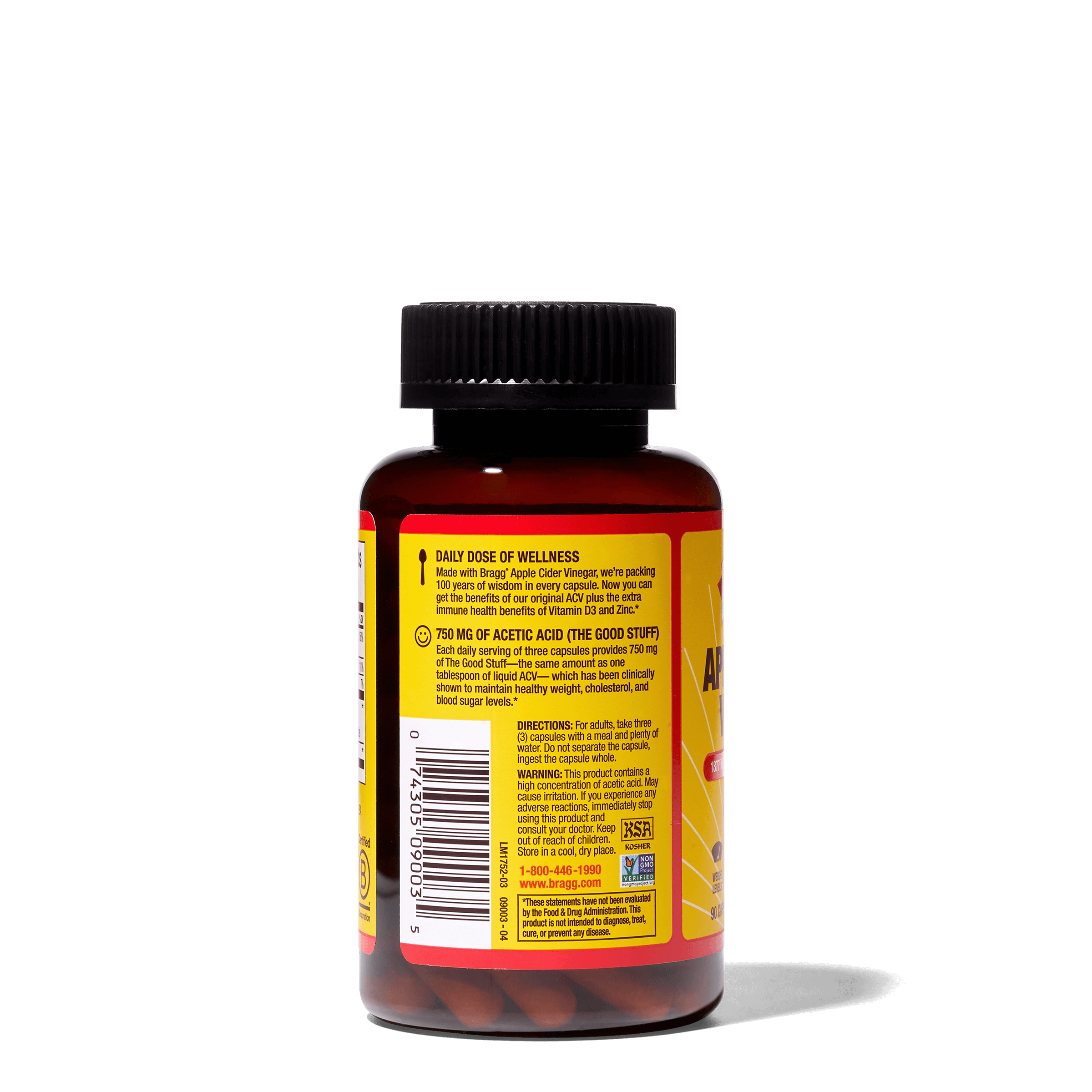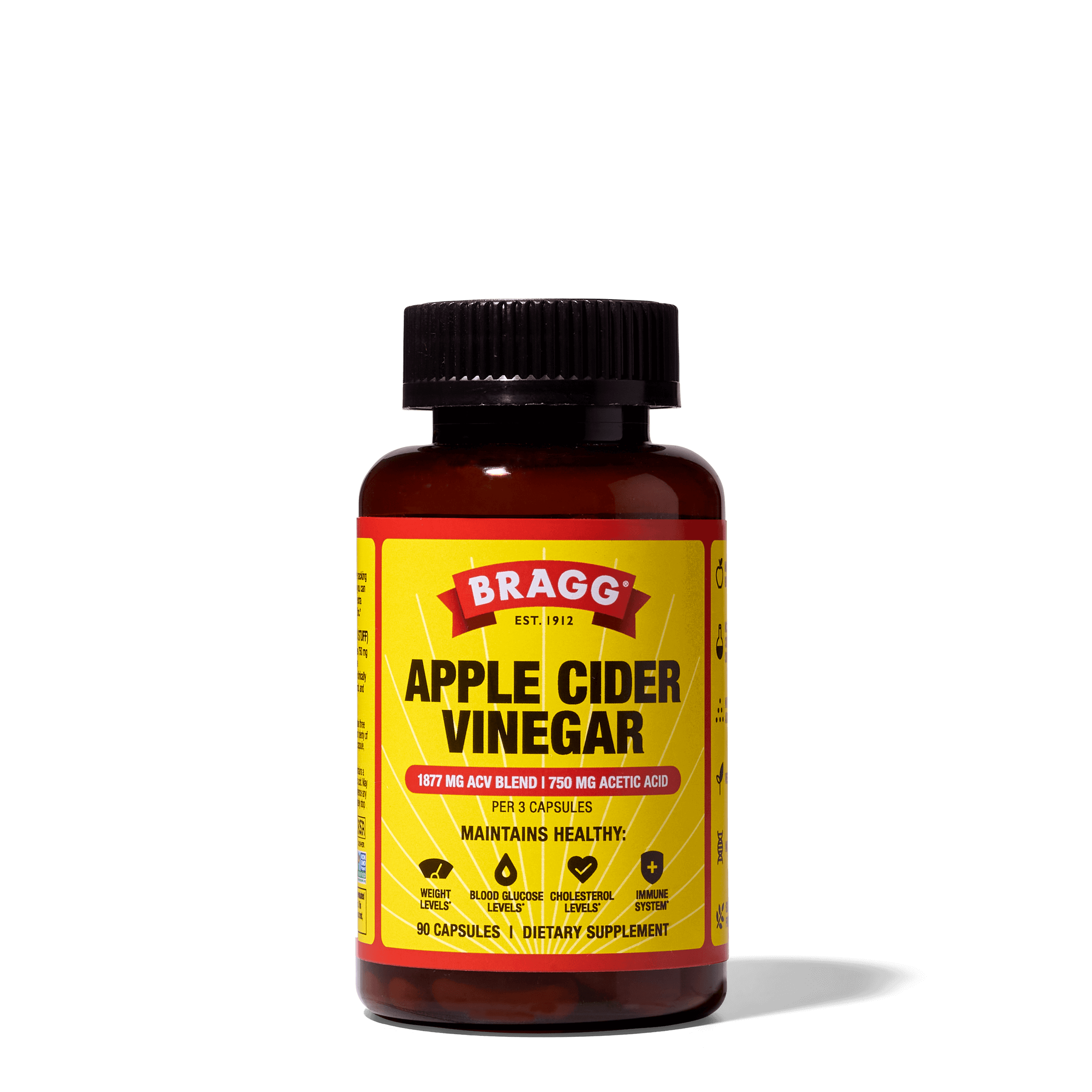 Support your health the natural way with Bragg®️ ACV Capsules. It’s your daily dose of apple cider vinegar made easy. With 750 mg of acetic acid and no added sugar, our on-the-go ACV Supplement is used to maintain healthy weight, blood glucose, and cholesterol levels. It also delivers daily support for immunity and overall well-being.*