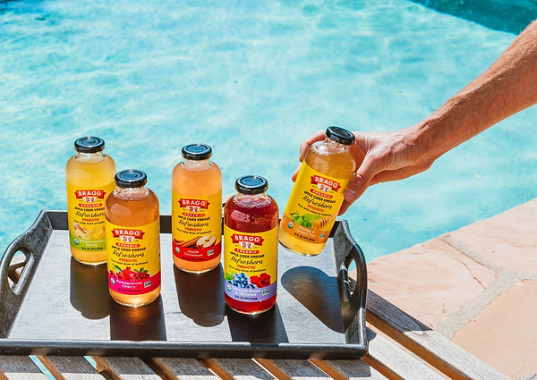 Enjoy the wellness of Bragg® Organic Apple Cider Vinegar in a ready-to-drink, naturally sweet beverage. Our Ginger Lemon Honey ACV Refreshers combine a bright citrus flavor with a subtle gingery bite and 750 mg of acetic acid per serving. Each Ginger Lemon Honey ACV Refresher is crafted with organic ingredients, no artificial coloring or preservatives, and just 35 calories per serving.
