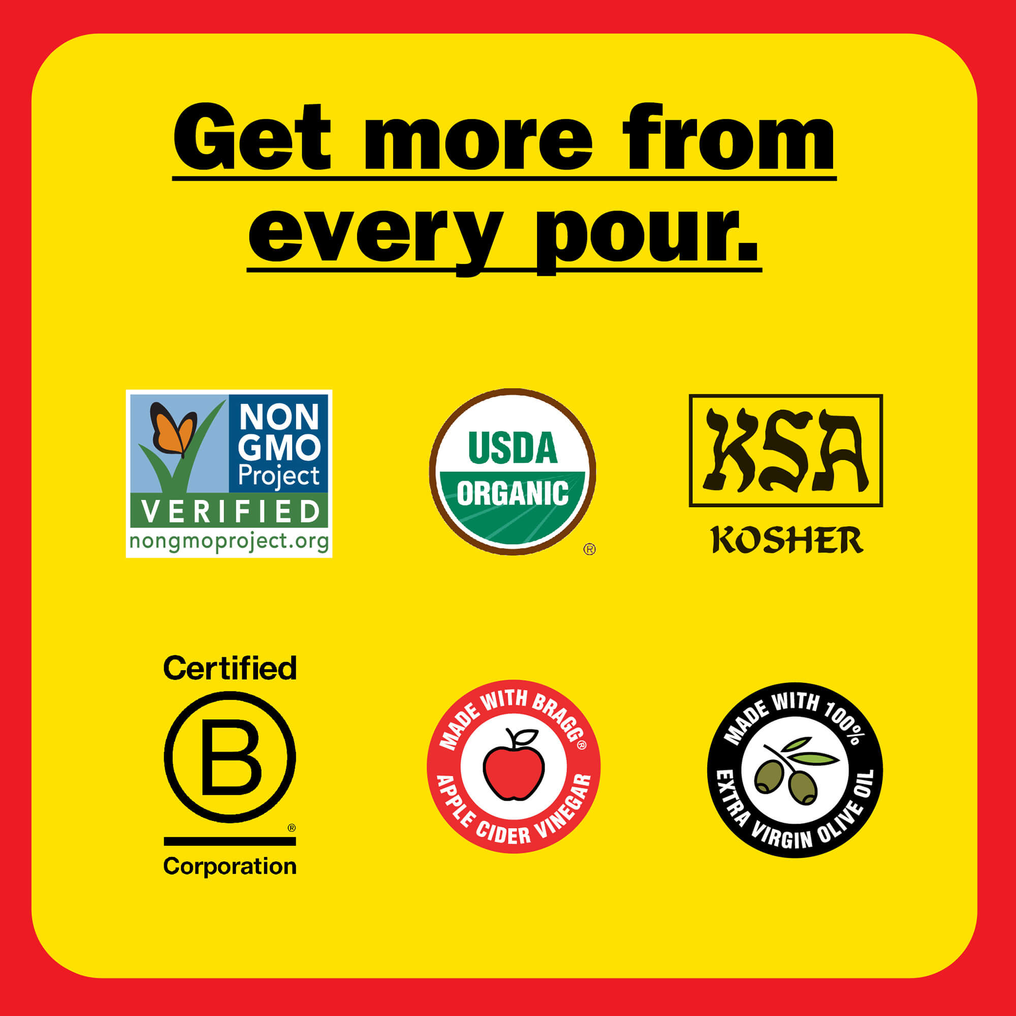Shake it. Pour it. Love it. Our range of organic dressings delivers bold flavor without compromise. Our Apple Cider Vinaigrette is made with clean, simple ingredients like Bragg® Apple Cider Vinegar and Extra Virgin Olive Oil, ensuring you get a splash of wellness on your salads, pastas, and protein marinades.